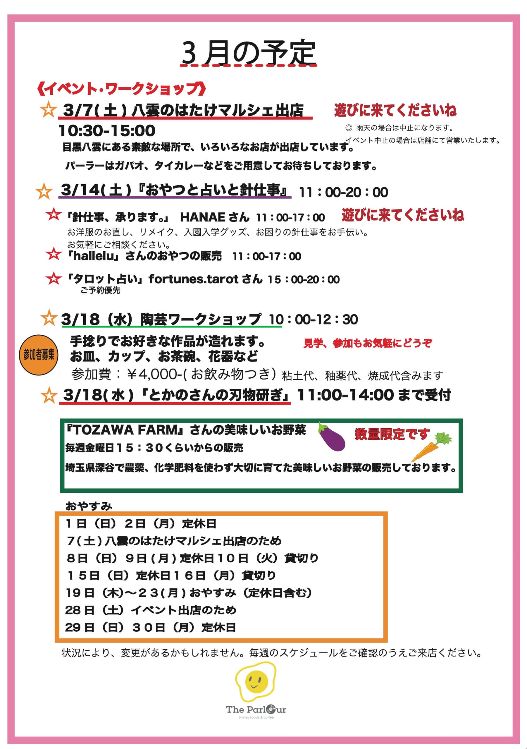 ☆3/7(土)八雲のはたけマルシェ出店 10:30-15:00